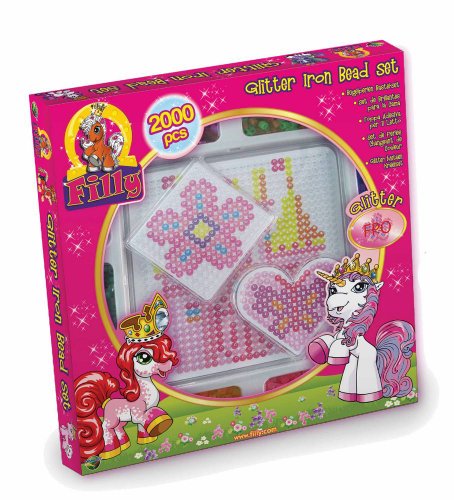 Ein kreatives Muss für jeden Filly-Fan!!! Das Filly World Bügelperlen-Set enthält ca. 2000 Bügelperlen in vielen verschiedenen Farben und Steckplatten. Das Set bietet unendlich viele Gestaltungsmöglichkeiten und ist in zwei verschiedenen Varianten erhältlich: - Glow in the Dark Bügelperlen Sets - Glitzer Bügelperlen Sets. Achtung! Nicht für Kinder unter 3 Jahren geeignet, da Kleinteile verschluckt werden können. Erstickungsgefahr!