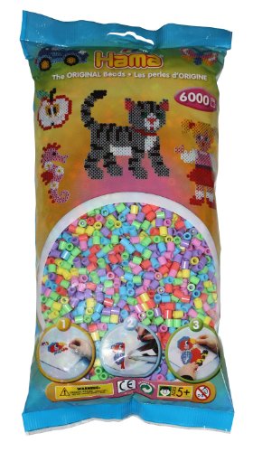Hama 205-50 - Bügel-Perlen, circa 6000 Stück, pastellmix. Achtung! Erstickungsgefahr durch verschluckbare Kleinteile! CE Bügel-Perlen, circa 6000 Stück