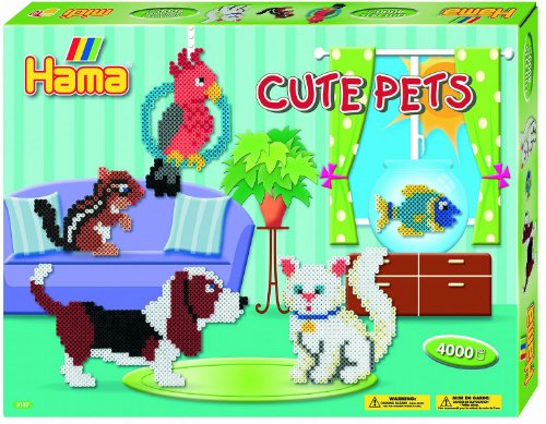 Hama 3137 - Geschenkverpackung niedliche Tiere, circa 4000 Bügelperlen und 2 viereckige Stiftplatten: Amazon.de: Spielzeug